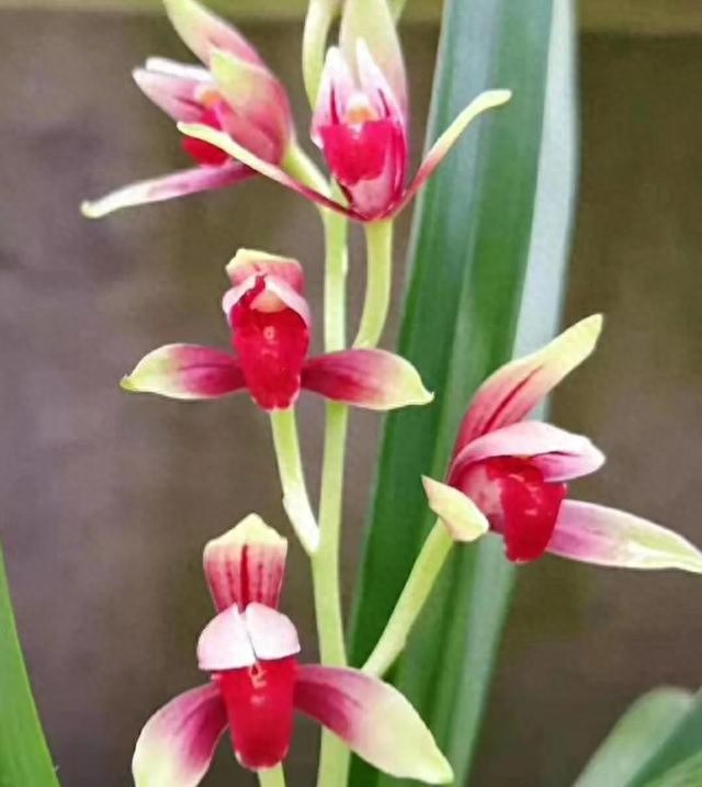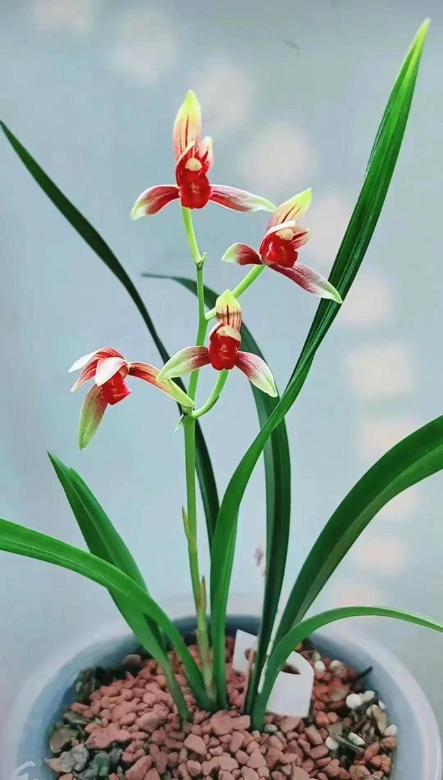 国魂更是勤花勤草的代表,每年至少能开花4次左右,仿佛永远也不知道疲倦,堪称是兰花界的小蜜蜂。它不但花美,叶片的辨识度也很高,叶片下半部分的直立性比较强,中上端向外翻转,叶尖有行龙。即便是不在花期,也显得是那么朝气蓬勃。它火了这么多年,至今热度不减。把咱们的居室打造成一个高雅居所,一盆国魂就能做到。